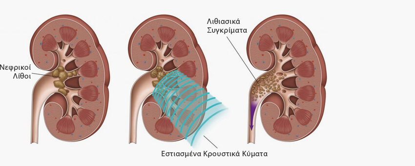 Σε όλες τις περιπτώσεις μεταδίνεται το κρουστικό κύμα σε ποσότητα νερού μέσα σε ένα κάτοπτρο που συγκεντρώνει την κρουστική δέσμη στο σημείο του λίθου. Ο λίθος αρχίζει να πάλλεται και να θρυμματίζεται από έξω προς μέσα από την περιοχή εισόδου και εξόδου του κύματος.